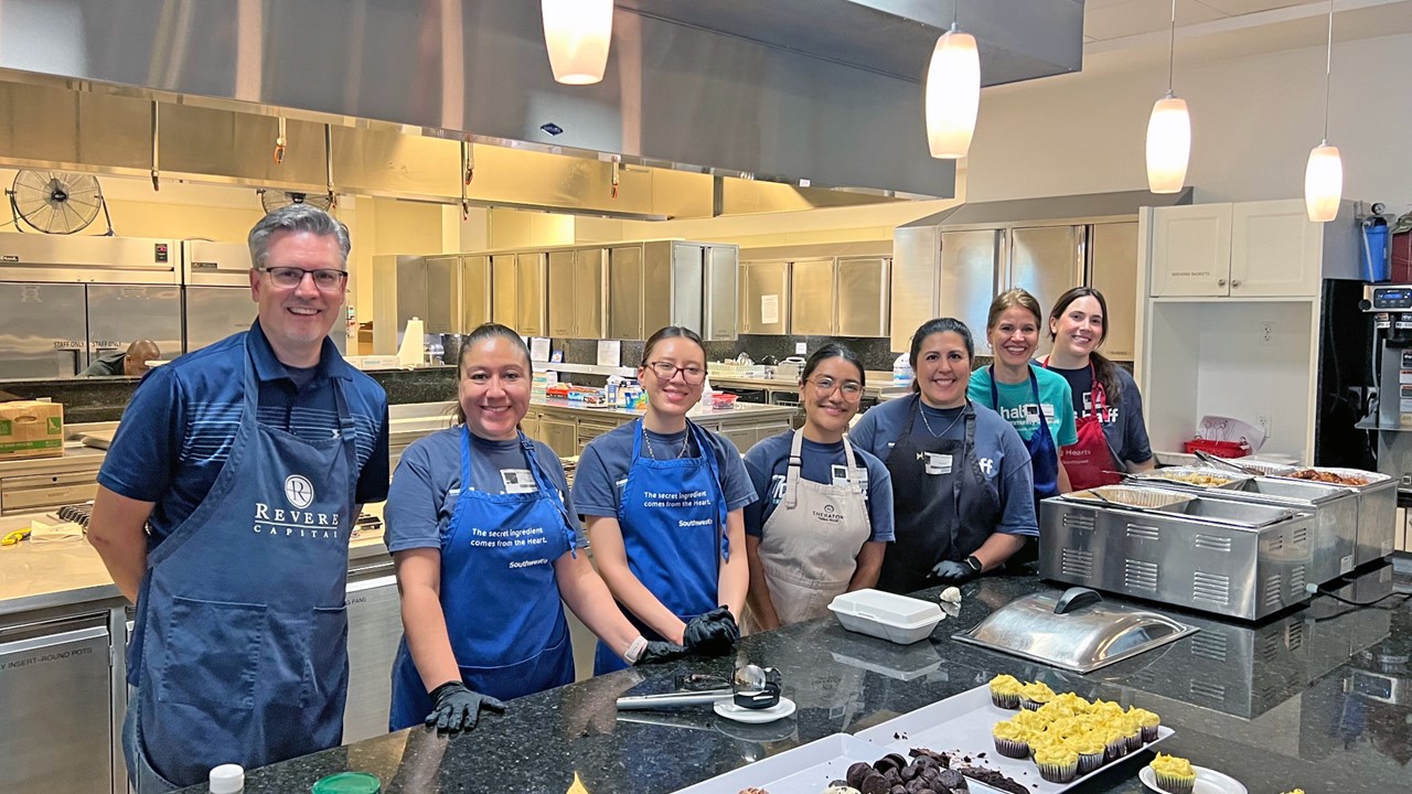 Richardson volunteers spent their evening cooking BBQ chicken, roasted potatoes and baked beans for families staying at the Ronald McDonald House.