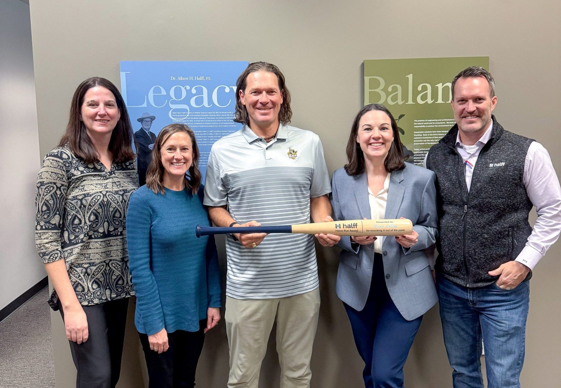President and CEO Jessica Baker Daily presented the Halff Home Run Award to North Texas Market Leader Brian LaFoy in Halff’s Frisco office, in recognition of his leadership, ownership and commitment to excellence.